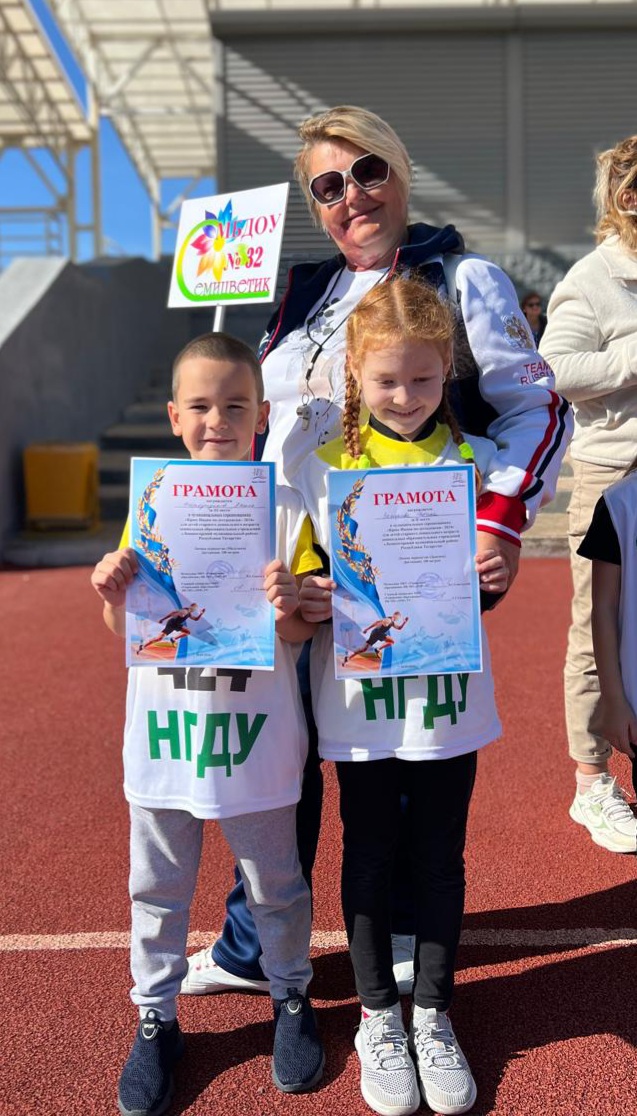 Поздравляем с победой в муниципальных соревнованиях "Кросс Нации по-детсадовски - 2024" для детей старшего дошкольного возраста дошкольных образовательных учреждений "Лениногорского муниципального района" Республики Татарстан Закирову Сабину (2 место), Фатхутдинова Амиля (3 место) и нашего инструктора по физической культуре Горбунову Светлану Владимировну! Также выражаем огромную благодарность родителям наших воспитанников и организаторам данного соревнования!