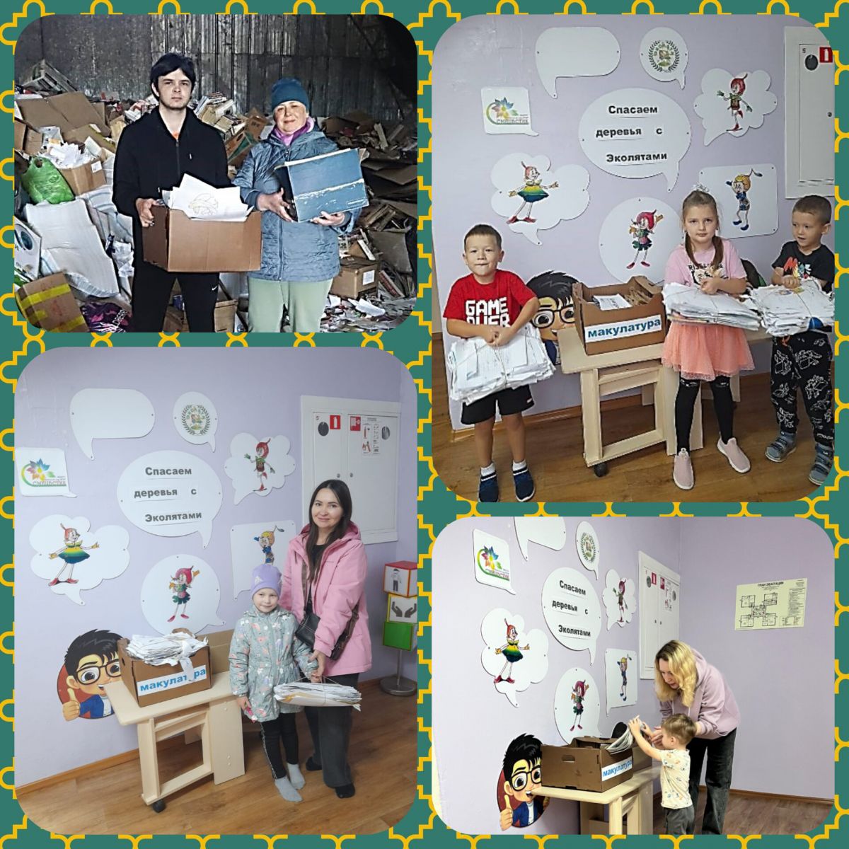 Наши воспитанники совместно с родителями и педагогами приняли активное участие в экологической акции по сбору макулатуры "Спасаем деревья вместе с Эколятами".