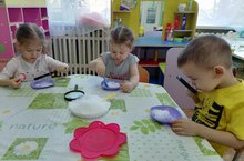 В рамках гостевого обмена опытом, педагог Тахауова Светлана Геннадьевна сегодня с детьми своей группы "Сказка" провела интегрированную образовательную деятельность "Следствие ведут знатоки: необычное в обычном", где предметом для исследования стала обычная пуговица. Дети средней группы узнали, что пуговицы не только необходимы человеку в одежде, но и могут быть опасными. А ещё с пуговицами можно научиться считать, экспериментировать, с помощью разных размеров пуговиц можно нарисовать целую картину, тренируя технику обведения предмета. Пуговицы на дорожке здоровья, которые сделали родители воспитанников, помогают сохранить здоровье и используются в целях профилактики плоскостопия. Пуговицы это ещё и весёлый шумовой музыкальный инструмент, когда ими заполнишь какую-нибудь коробочку. Дети узнали, что существует музей пуговиц, памятник пуговице. Так, в процессе разнообразных видов деятельности дети обычную пуговицу смогли необычно использовать.