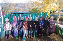 Вот и наступила осень, деревья приняли золотые обличья. И на участках образовался золотой ковер. Дети подготовительной к школе группы "Непоседы" принялись за работу! Организовали на участках групп малышей уборку опавших листьев. Осенью и за клумбой тоже нужен уход! Убирали сухие цветы и собирали семена однолетних цветов. Ребята с радостью принялись за дело, потому что знают, что дети группы "Радуга" ещё совсем маленькие и такая работа на участке им не под силу.Совместный труд объединил всех: дети договарились о том, кто будет сгребать опавшие листья, а кто их собирать в тележки, помогали друг другу.Повседневная трудовая деятельность детей позволяет не только приобщать детей к посильному труду, но создавать в коллективе детей деловую атмосферу! -