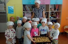 Сегодня во второй младшей группе "Лучики" стоял аромат ванили. Наши маленькие кулинары вместе со своим воспитателем Гульсирой Минигалиевной решили испечь для своих бабушек и дедушек сладкие подарки для своих юбимых и дорогих бабушек и дедушек - ароматное печенье. Как и положено, малыши замесили и раскатали тесто, с помощью форм налепили печенье, сложили свои заготовки на большой противень и отнесли на кухню, где добрые повара испекли печенье.