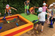 Большую воспитательную ценность имели организованные педагогами целевые прогулки. Так дети группы "Радуга" и "Почемучки" совершили прогулки к пешеходным переходам, в процессе которых наблюдали за транспортом, за поведением пешеходов, определили опасные места на оживлённых улицах.Интересными для дошкольников было проигрывание проблемных ситуаций в сюжетно-ролевых играх во время прогулки.