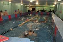 Сегодня в детском саду прошёл чемпионат по плаванию среди детей старшего дошкольного возраста. 18 мальчиков и девочек из групп "Ромашки" и "Почемучки" соревновались в дисциплинах "Кроль на груди" и "Кроль на спине". Торжественное открытие чемпионата и неожиданный приход пиратов сразу настроил наших пловцов на победу. Дети показали свои навыки в умении плавать в определенном стиле, быстроту перемещения в воде, правильность элементов. Многие дети показали очень высокие результаты как в скорости, так и в плавании в стиле "Кроль". На церемонии награждения болельщики долго апплодировали победителям, которым были вручены грамоты и памятные сувениры.