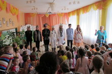 Сегодня в детском саду мы принимали гостей из СОШ №7. Школьники из 6 класса вместе со своим учителем английского языка Дмитриевой Оксаной Анатольевной преподнесли нашим детям театральный подарок в виде постановки сказки "Колобок" на новый лад на английском языке. Многие дети из старшей и подготовительной группы посещают кружок английского языка, который ведётся в нашем детском саду. Им особенно интересно было услышать английскую речь, да ещё и в музыкальной сказке в современной обработке. В конце своего выступления школьники пригласили наших детей вместе потанцевать под весёлую английскую шуточную песню, слова которой многие даже начали подпевать. И школьники, и дошкольники получили массу позитива!