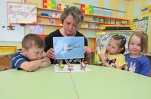 "Несколько десятков лет назад был такой же прекрасный, как и сегодня, июньский денёк. Светило солнце. Молодёжь с удовольствием танцевала на танцплощадках. Выпускники школ строили планы на будущее. Но утром 22 июня кончилась беззаботная жизнь. Планам и мечтаниям людей не суждено было сбыться. Именно в этот день - 22 июня 1941 года началась Великая Отечественная война. Фашистская Германия без объявления войны напала на нашу Родину. Первые дни войны были для нашей страны очень трудными. Погибло много людей. Вчерашние школьники, молодые мальчишки ушли на войну", - с таких слов воспитатель, Ольга Ивановна, начала беседу в старшей группе. Дети слушали знаменитую песню "Вставай, страна огромная!", рассматривали репродукции, изображавщие начало Великой Отечественной; читали стихи. Завершилось меропритие песней "Пусть всегда будет солнце!".