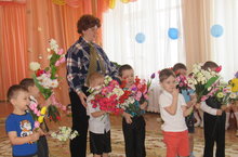 Во 2 младшей группе "Радуга" малыши чествовали своих мам и бабушек весёлым представлением по мотивам сказки о Колобке, где дети приняли активное участие в его судьбе. У детей это был первый совместный праздник с родителями: и педагоги, и больше всего мамы наших воспитанников переживали за эмоциональное состояние детей. Но сказка так увлекла детей, что они только радовались и улыбались от всего происходящего с чувством безмерного счастья, что мама в этот момент рядом.