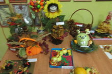 Осень богата своими плодами, все собирают урожай, и некоторые даже не подозревают какие замечательные интересные поделки можно смастерить из офощей, фруктов, жёлудей, шишек, рябины и даже обыкновенных листьев. В нашем детском саду в очередной раз проходит традиционная выставка "Дары осени", в которой приняли участие дети, родители, педагоги. Выставка этого года отличилась своей оригинальностью, неординарностью подходов к созданию поделок. Так, здесь моджно было увидеть ожившую сказку В.Сутеева "Под грибом", где все герои выполнены из различных природных материалов. А какая чудесная икебана-тыква "выросла" на нашей импровизированной грядке! Фантазиям из шишек не было предела: здесь и пингвины, и лиса с зайцем, и филин, ухающий на суку дерева. Все участники постарались на славу!
