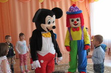 Наш детский сад, откликаясь на социальный заказ родителей воспитанников, вводит новую услугу "День рождения" в детском саду. Сегодня именинника в одной из групп пришли поздравить Микки Маус и клоун Клёпа. Забавные герои организовали ребёнку грандиозный праздник! Весёлые танцы, игры, подарки, скачки на фитбольных мячах, шоу мыльных пузырей - сделало этот день незабываемым для малыша и его родителей.