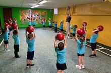 В младших группах «Светлячки» и "Любознайки" прошёл замечательный физкультурный праздник "Праздник мяча". Игры с мячом привлекают детей всех возрастов. Он притягивает и манит, стимулирует фантазию и двигательное воображение, игры с мячом оказывают неоценимую пользу для здоровья и физического развития. Дети выполнили разминку с мячами, отгадывали загадки, познакомились с видами мячей, с удовольствием ловили мячи, передавали друг другу, бросали в цель, прыгали с ними и получили массу положительных эмоций. Как известно, именно мяч является одной из первых игрушек с которой начинает играть ребенок с самого раннего детства. С возрастом привычки детей меняются, меняются игры и игрушки, но мяч остаётся с ними всегда. -