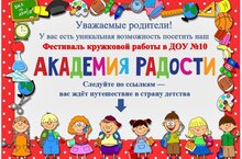 Дорогие родители и гости нашего сайта!Мы рады сообщить, что в нашем детском саду проходит увлекательный фестиваль «Академия радости», посвящённый кружковой работе. Что вас ждёт? Знакомство с разнообразием кружков и секций нашего детского сада! А также возможность увидеть, как проходят занятия и чем занимаются ребята!Приглашаем вас окунуться в мир детского творчества и открытий!Загляните в «Академию радости»: увидите, как раскрываются таланты ваших малышей в творческой атмосфере нашего детского сада! -