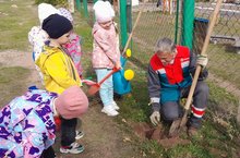 Природоохранная акция в старшей группе "Звёздочки": "Только вместе, только дружно, помогать природе нужно!" Наши воспитанники посадили саженцы деревьев перед детским садом. Спасибо большое нашему дворнику дяде Володе за помощь и активное участие. -