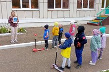 Самокат – замечательный вид детского транспорта, потому, как овладеть искусством катания – просто и доступно каждому ребенку. Катание на самокате положительно сказывается на здоровье и физическом развитии детского организма. Благодаря необходимости поддерживать равновесие во время езды у ребят улучшается внимание, концентрация и выносливость. Но для того, чтобы избежать травм, нужно знать правила безопасности при езде на самокате.В подготовительной к школе группе "Любознайки" прошел спортивный праздник "Безопасный самокат" с целью воспитания навыков безопасного поведения при езде на самокате. В ходе мероприятия дети повторили правила катания на самокатах:- на самокате можно кататься только по тротуару;- нельзя выезжать на проезжую часть улицы или двора;- проезжая мимо прохожих вовремя подавать звуковой сигнал и соблюдать меры предосторожности;- в случае ушиба или травмы при падении нужно сразу обратиться к кому-либо из взрослых за оказанием помощи. -