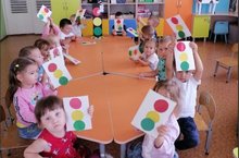 Чтобы расширить знания о правилах поведения на дороге, познакомиться с сигналами светофора и пешеходным переходом, воспитанники второй младшей группы «Фантазёры» вместе с воспитателем побывали в волшебной стране Светофории. Дети дружно отвечали на вопросы о назначении светофора и его сигналах, отгадывали несложные загадки, слушали веселые стихи, с интересом рассматривали макет светофора и иллюстрации с различными дорожными ситуациями, поиграли в игру «Собери светофор». А в конце малыши с удовольствием принялись мастерить свои светофоры, закрепляя свои знания о сигналах светофора. -