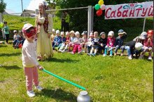 В нашем детском саду стало традицией в июне проводить праздник Сабантуй. В празднике приняли участие все дети. Ребята показали свою ловкость и умения в национальных играх «Эй, дружок, продай горшок», «Бег в мешках», «Бег с ведрами», «Перенеси яйцо в ложке», «Перетяни канат». Самым сложным для ребят, оказалось, попасть по горшку с закрытыми глазами, но и с этим испытанием они справились! А затем вместе с гостьей праздника – татарской красавицей Альбиной воспитанники водили хоровод и танцевали под национальную музыку. -