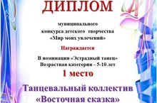 Дом детского творчества г. Лениногорска организовал муниципальный конкурс детского творчества "Мир моих увлечений", в котором приняли участие танцевальные и вокальныеколлективы нашего детского сада. Так, танцевальный коллектив "Восточная сказка" (группа "Лучики", руководитель Веневитина Е.А.)) стали победителем в номинации "Хореография". А вокальный ансамбль "Хрустальный голосок" (сборная возрастных групп, рук. Артемьева Г.А.) стал победителем в номинации "Вокал". Танцевальные коллективы "Энергия" (черлидинг, группа "Сказка, рук. Веневитина Е.А.) и "Калинка" (группа "Любознайки", рук. Тихонова Т.А., Липатова А.В.) стали призёрами и заняли 3 место. Поздравляем всех с успешным выступлением и отличными результатами в муниципальном конкурсе! -
