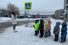 Сегодня ребята средней группы «Любознайки» отправились на целевую прогулку, чтобы закрепить правила перехода проезжей части по пешеходному переходу. Алёна Вячеславовна активизировала внимание детей на том, что они у проезжей части дороги должны находится только вместе со взрослыми и всегда соблюдать правила дорожного движения.
