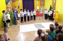Ребята подготовительной к школе группы "Лучики" пригласили сегодня малышей на премьеру своего музыкального спектакля по обучению правилам дорожнго движения "Колобок" по мотивам одноименной сказки. Но сюжет сказки закрутился очень необычно- Колобок убежал от бабушки и дедушки не в лес, а в город, где на проезжей части повсюду его ожидали опасности. Ребята-зверята учили Колобка правилам дорожного движения. -