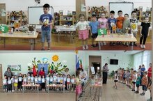 Далее дети продолжили изобретать поделки дома с родителями. В завершение была организована выставка "Ярмарка детских изобретений". Ребята презентовали свои поделки перед всеми участниками, дети поделились своим опытом и увидели результаты других. В итоге всё воспитанники получили грамоты "Активный изобретатель" и общее фото.