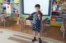 Никита посещает детскую музыкальную школу и обучается игре на скрипке. Ребятам не только предоставилась возможность рассмотреть этот удивительный инструмент и получить ответы на свои вопросы, но и услышать его мелодичное звучание во время исполнения Никитой небольших музыкальных пьес.