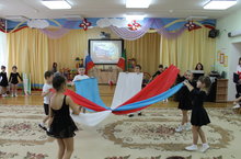 В рамках стажировочной площадки по КПК музыкальных руководителей ДОУ РТ состоялся открытый показ творческого мероприятия "Спортивная Россия" по приобщению дошкольников к социокультурным нормам общества и государства для слушателей курсов повышения квалификации. В мероприятии приняли участие воспитанники подготовительных и старшей группы "Звездочки", педагоги ДОУ. Мероприятие подготовлено в рамках долгосрочного проекта ДОУ "Наш выбор: движение - это жизнь!" . Важной составляющей стажировочной площадки стал круглый стол по обмену мнениями его участников. Оригинальный подход педагогов к проведению традиционного Дня единства России для старших дошкольников положительно оценен всеми участниками.