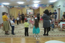 18 января 2017 года в старшей группе «Солнышко» состоялся консультативный пункт по реализации УМК в форме игры –тренинга кафе «Дуслык», где дети и их родители выступали в роди посетителей и официантов кафе-караоке «Дуслык». Дети и родители заказывали настоящие блюда, а несколько детей и их мама принимали заказы и обслуживали посетителей кафе, общаясь преимущественно на татарском языке с использованием слов согласно УМК для старшей возрастной группы. Так же дошкольники вместе с родители исполняли татарские песни, в том числе и из УМК, отгадывали татарские песни по мелодии, мультфильмы по видеокадрам, подготовили и показали для своих пап и мам рекламу, призывающую к просмотру мультфильмов на татарском языке. Идея проведения такого консультативного пункта в форме настоящего кафе с использованием не муляжей и картинок, а настоящих блюд была предложена старшим воспитателем В.А. Павельевой. Судя по реакции воспитанников и их родителей, такая форма проведения консультативного пункта им очень понравилась, ведь дети не только повторяли татарские слова, но учились тому, как следует себя вести в общественных местах, в частности в детском кафе.