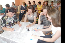 14 мая прошла проблемно-деловая игра для педагогов "Поликультурное образование в детском саду" в МБДОО №10. Целью игры является активизация деятельности педагогов по поликультурному образованию детей. Игра прошла в три этапа: на первом этапе педагоги работали индивидуально, прочитали высказывания разных авторов о поликультурном образовании, выделили суть и то как они понимают эти высказывания, затем схематично зарисовали смысл поликультурности. На третьем этапе группы с равным количеством участников решали кроссворды.Все педагоги проявили себя, высказали свою точку зрения по этому вопросу, схемы были оригинальными и творческими. Эта встреча была очень продуктивной и для всех была очень полезной.