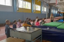 В спортивной школе методист провела детей по залам и подробно рассказала какими видами спорта занимаются в спортивной школе. Дети с большим интересом рассматривали тренажеры, медали, кубки, грамоты. Хочется отметить, что эта экскурсия настолько подняла спортивный дух детей, что они многие изъявили желания посещать спортивную школу.
