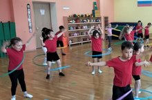 В средней группе «Фантазёры» дети продолжают учится владеть обручами. Детям всегда нравится заниматься с предметами. Летом много места на улице, где дети с удовольствием крутят обруч на талии, на