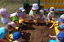 Воспитанники 2 -ой младшей группы "Радуга" с большим интересом играли в группе с любимыми игрушками, организовывали совместные сюжетно - ролевые игры на песке, где были водители, строители и просто кондитеры. Строили дороги, дома, башни, пирожные, торты, пирожки при помощи формочек. "Неделя игры и игрушки" обогатила знания и умения детей в играх. Игра занимает весма важное, если не сказать центральное, место в жизни дошкольника, являясь преобладающим видом его самостоятельной деятельности. Свободная сюжетная игра - самая привлекательная для детей дошкольного возраста деятельность. Её привлекательность объясняется тем, что в игре ребёнок испытывает внутреннее субъективное ощущение свободы которое связано со спецификой сюжетной игры - действием в воображаемой, условной ситуации. Дети проявили свою активность и уверенность. Развивали творческие способности в играх с песком, коллективных играх, правила добрых взаимоотношений в игре.