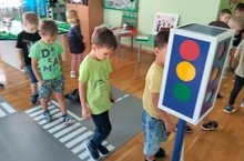 03.11.2022 года» в рамках недели по безопасности «Осенние каникулы» в средней группе «Фантазёры» создали условия для изучения и закрепления знаний и умения по использованию правил дорожного движения в игровых и практических ситуациях. Особое внимание уделили пешеходному переходу. В игровой ситуации в кабинете по правилам дорожного движения дети тренировались по правилам переходить проезжую часть, главным регулировщиком был светофор.