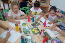18.06.21г. воспитанники 2 младшей группы «Звёздочки» продолжая радоваться лету, решили зепечатлеть любимый цветочек Одуванчик, так похожий на солнышко. Благодаря технологии ТРИЗ, ребята научились рисовать с помощью вилочек. Им так понравилось, что когда они закончили рисовать цветочки, стали предлагать друг другу, что можно еще нарисовать вилкой (солнышко, ёжика, пумпончик на шапочке). Ребятам очень нравятся творческие задания, они увлеккаются, фантазируют и радуются результату.