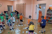 Открытие Недели Здоровья состоялось на утренней зарядке, на которой к младшим группам приходил доктор Айболит и к старшим прибегала Простуда.