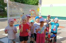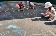 Один из летних дней июля был посвящён Дню цветного мелка. Темой дня стали цветы. А этого на территории ДОУ в изобилии. Наши клумбы благоухают от распустившихся ромашек, бархатцев, петунии, лилейников. Аромат цветов притягивает красавиц бабочек и тружениц пчёл. Поэтому изобразить их на асфальте нам не стоило труда!