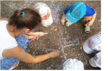 Много интересных событий происходит летом в ДОУ. Одно из них- конкурс рисунков на асфальте. Вспомните, кто из нас не любил рисовать мелом на асфальте? Наши воспитанники тоже очень любят это занятие. И вот на серой поверхности асфальта появились яркие следы от разноцветных мелков. Мелки становились меньше, а рисунков становилось всё больше. И вскоре весь двор стал напоминать художественную галерею, посетить которую мог каждый желающий.
