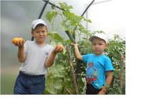 В нашем саду есть теплица, в которой мы выращиваем овощи. В качестве эксперимента дети следят за ростом огурцов и помидоров, учатся наблюдать, рассуждать, планировать работу, экспериментировать, сравнивать, делать выводы и обобщения, имеют возможность почувствовать себя ученым, исследователем, первооткрывателем. Массу положительных эмоций и впечатлений дети получают в работе по уходу за растущими овощами. Ну и, безусловно, огурчики, которые они лично поливали и сорвали с грядки, кажутся им намного вкуснее покупных. -