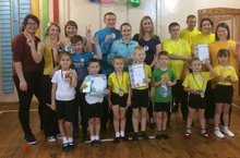 Итоговым мероприятием недели было соревнование "Папа, мама, я - здоровая семья!". В конкурсе участвовали пять команд. У них были и свои болельщики, которые сидели на трибунах и поддерживали свои команды, благодаря чему участники соревнований старались выкладываться в полную силу. Накал борьбы настолько захватывал и завораживал всех, что и не заметили, как пришло время подводить итоги. Поздравляем всех победителей и участников соревнований. Без хорошего настроения не ушёл никто!