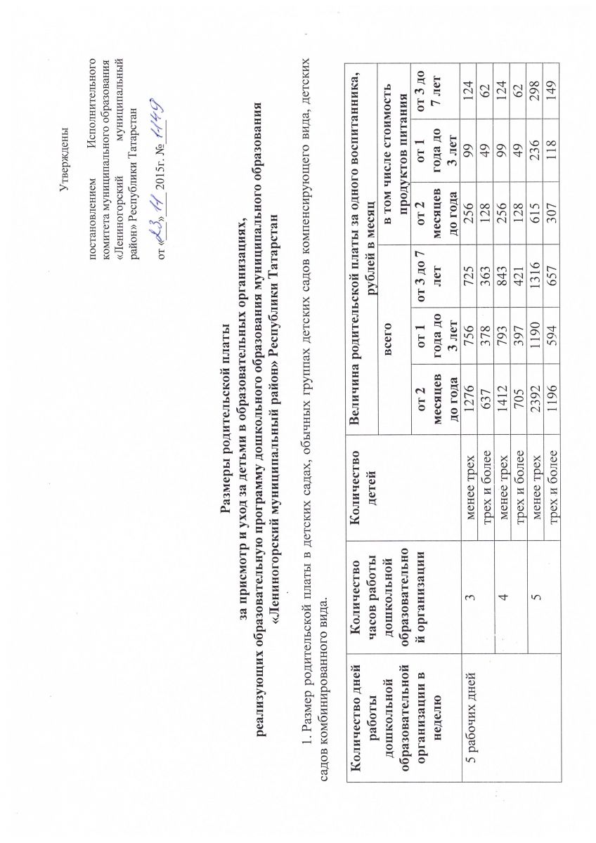 Размер родительской платы для вновь принятых воспитанников с 01.01.2023 года.