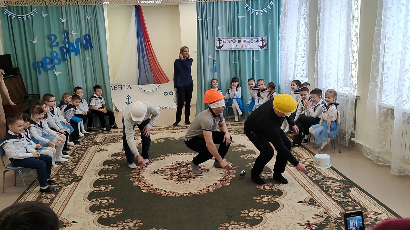 23 февраль бәйрәме-мәктәпкәчә яшьтәге балаларда үз Ватанының иң яхшы традицияләренә карата кызыксыну тәрбияләү, балаларда тынычлык һәм тынычлык сагында торучы данлы Ватанны саклаучылар өчен горурлык формалаштыру өчен яхшы сәбәп. Урта төркем тәрбияләнүчеләре әтиләре һәм бабайлары өчен шигырьләр, җырлар һәм биюләр әзерләделәр. Ватанны саклаучылар көненә багышланган чара бик тиз һәм күңелле узды.