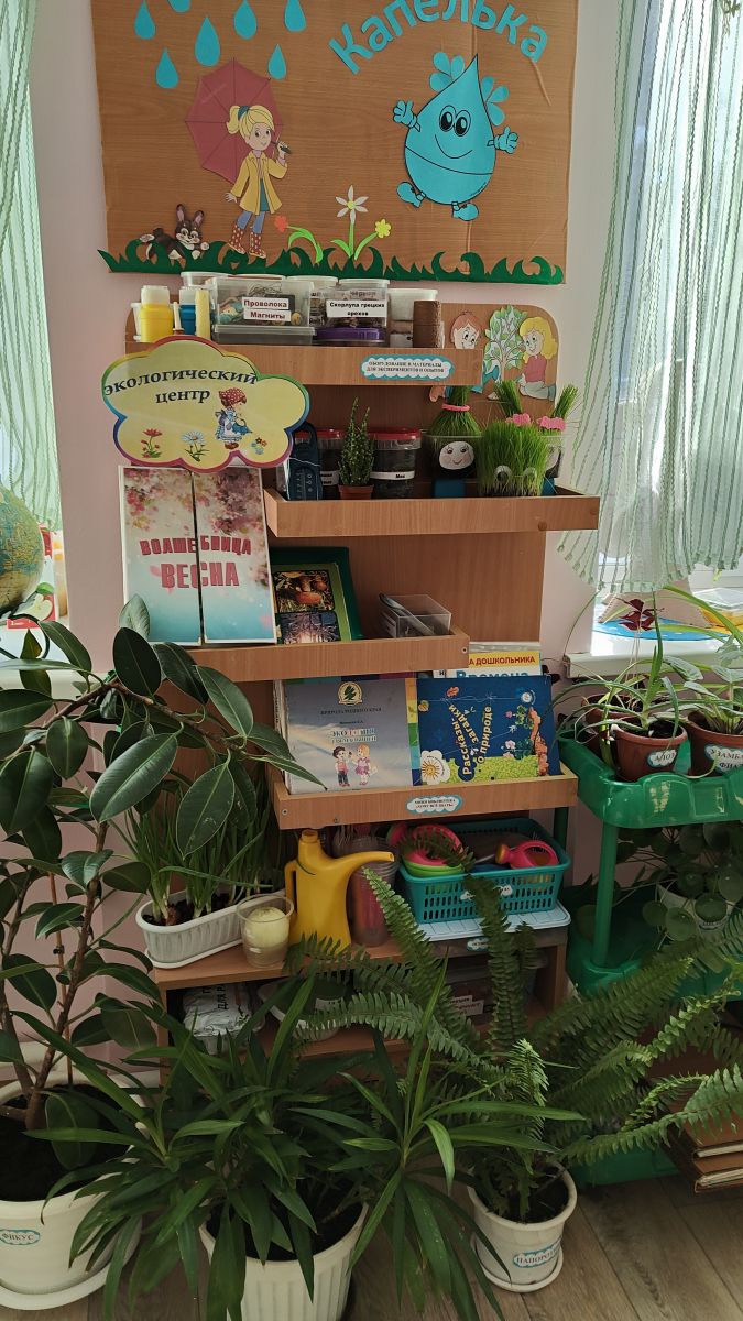 Педагоги творчески подошли к оформлению уголков природы, представили много инте-ресных и разнообразных материалов природоведческого направления, проявили фан-тазию в создании макетов мини-экосистем. В каждой группе есть календари природы, соответствующие возрасту детей. Главными обитателями экологических центров, конечно же, являются комнатные растения. У всех растений имеются паспорта. Во всех возрастных группах есть в наличии дидактические игры по экологии, материалы и оборудование для экспериментирования.