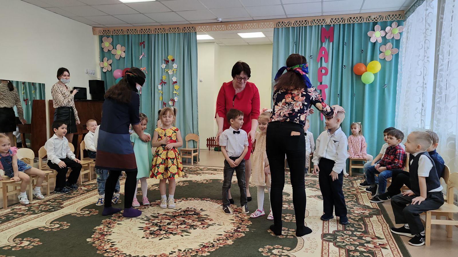 4 март көнне балалар бакчасында әлеге искиткеч бәйрәмгә багышланган мәктәпкә әзерлек төркемендә балалар иртәсе булып узды. Балалар әниләр һәм әбиләр өчен искиткеч концерт әзерләгәннәр: җырлар, биюләр, туганнарына, яраткан әниләренә һәм әбиләренә шатлык өчен шигырьләр белән чыгыш ясадылар. Гадәттәгечә, балалар үз куллары белән ясаган әниләргә һәм әбиләргә бүләксез калмады. Бүләкләр уникаль иде һәм таң калдырды, үз оригинальностью, матурлык. Бәйрәм, һичшиксез, балалар бакчасы тормышына язгы шатлык һәм бәхет атмосферасы алып килде.