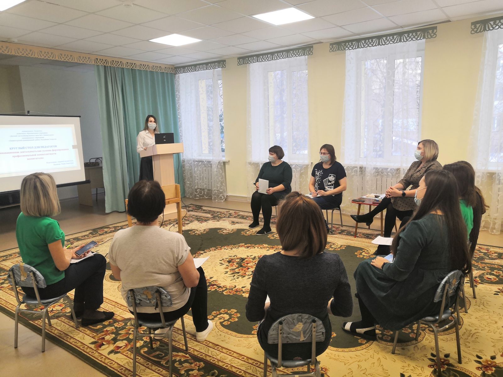 30.11.2021 прошел педагогический совет в форме круглого стола на тему: «Инновационная деятельность как условие формирования профессиональной компетентности педагогов в ДОУ» Цель: раскрытие роли воспитателя в системе профессиональной подготовки современного педагога; введение роли воспитателя в систему педагогических знаний, показ его значения в построении инновационной деятельности.