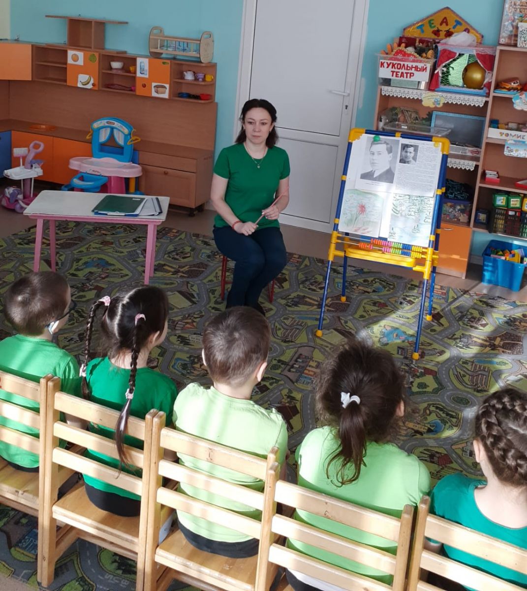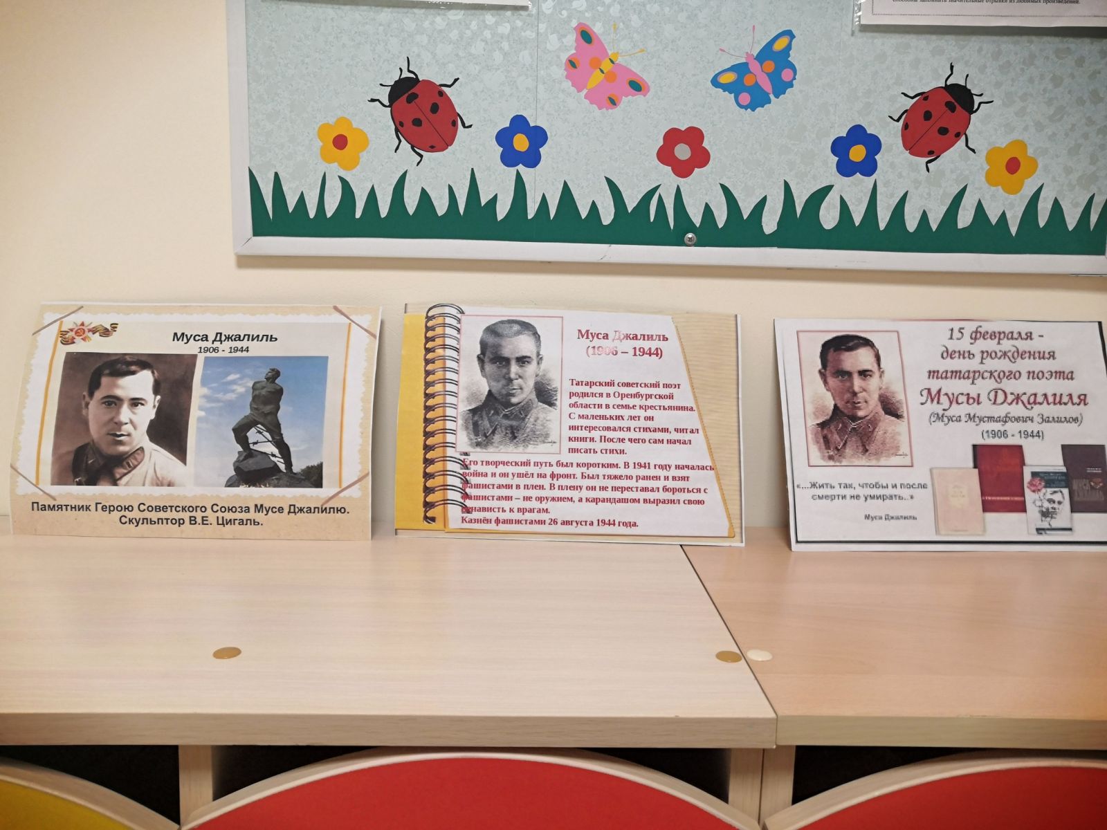 15-19 февралендә безнең балалар бакчасында Муса Җәлилнең туган көненә багышланган тематик анта узды. Балалар белән әңгәмә, белем бирү эшчәнлеге үткәрелде, татар халык уеннары, шигырьләр, җырлар өйрәнелде, шулай ук М. Җәлил иҗаты буенча күргәзмә оештырылды.