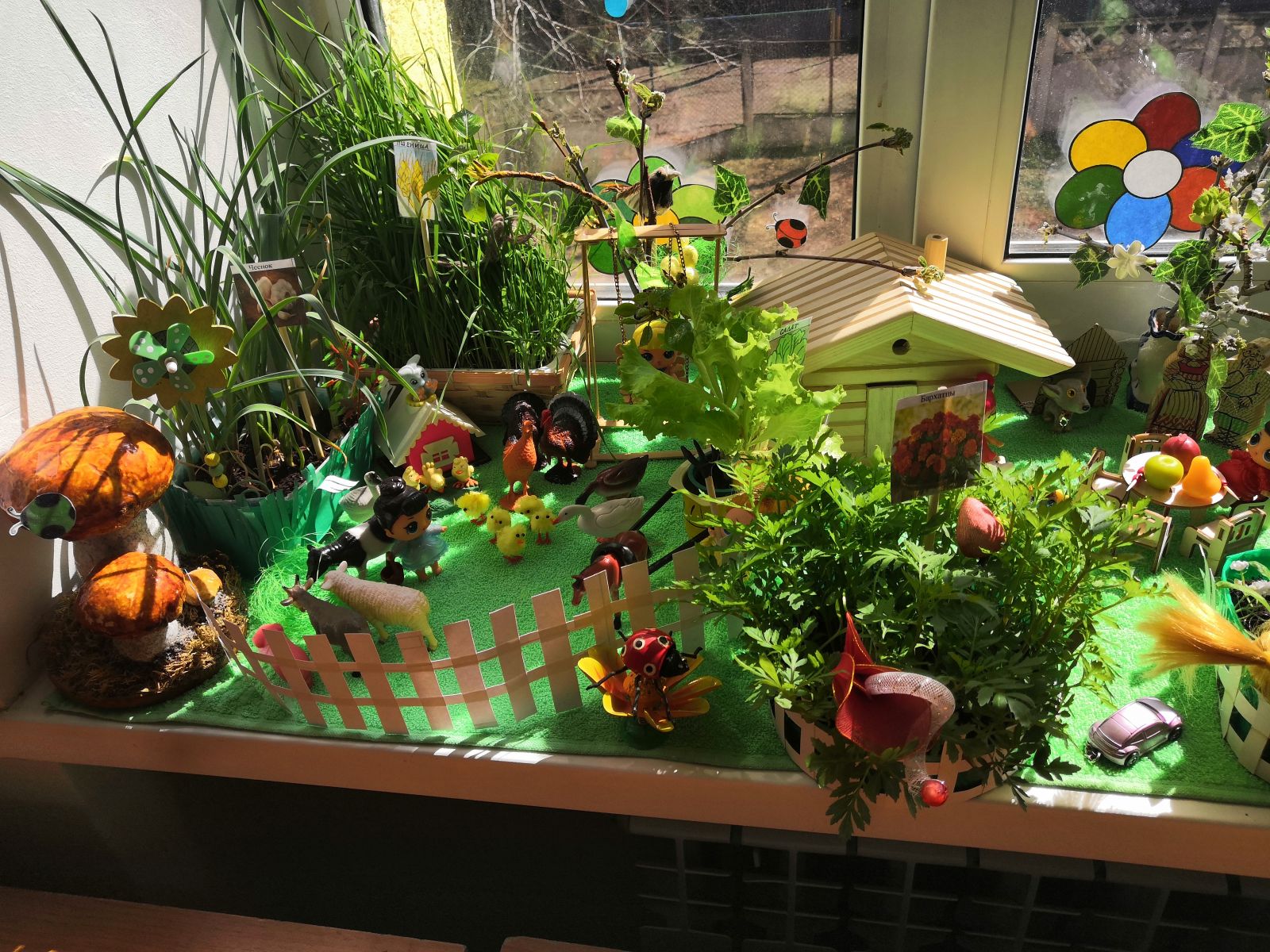 Еллык план нигезендә, 2021 нче елның 19 нчы апреленнән 23 нче апреленә кадәр безнең балалар бакчасында кече тәрбиячеләр өчен "Тәрәзә төбендәге хыяллар бакчасы"дигән конкурс үткәрелде. Әлеге конкурсның максаты булып кече тәрбиячеләрнең экологик тәрбияне тормышка ашыру буенча эшчәнлеген активлаштыру торды. Һәр яшь төркеменең кече тәрбиячеләре тәрәзә төбендә бакча оештырдылар. Алар үзенчәлекле һәм кызыклы килеп чыкты. Урыннар түбәндәгечә бүленде: