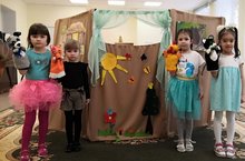 Занятия театральной деятельностью требуют от ребенка решительности, систематичности в работе, трудолюбия, что способствует формированию волевых черт характера. У ребенка развивается умение комбинировать образы, интуиция, смекалка и изобретательность, способность к импровизации. Выступления на сцене перед зрителями способствуют реализации творческих сил и духовных потребностей ребенка, раскрепощению и повышению самооценки. В рамках работы кружковой деятельности с детьми старшего дошкольного возраста "Чудо по имени Театр" (руководитель Хасанова Р. Р.) состоялась премьера кукольного театра "Кот, Лиса и Петух".