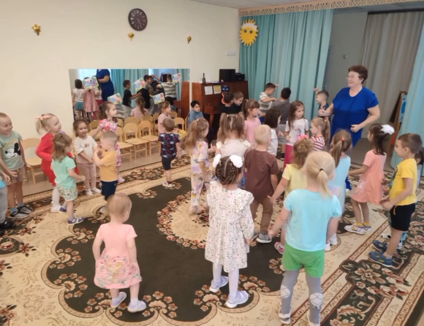 В нашем детском саду сегодня состоялись праздничные мероприятия, посвященные Дню знаний. Дети получили заряд бодрости, веселья и хорошего настроения, была создана праздничная атмосфера, радость от общения друг с другом.