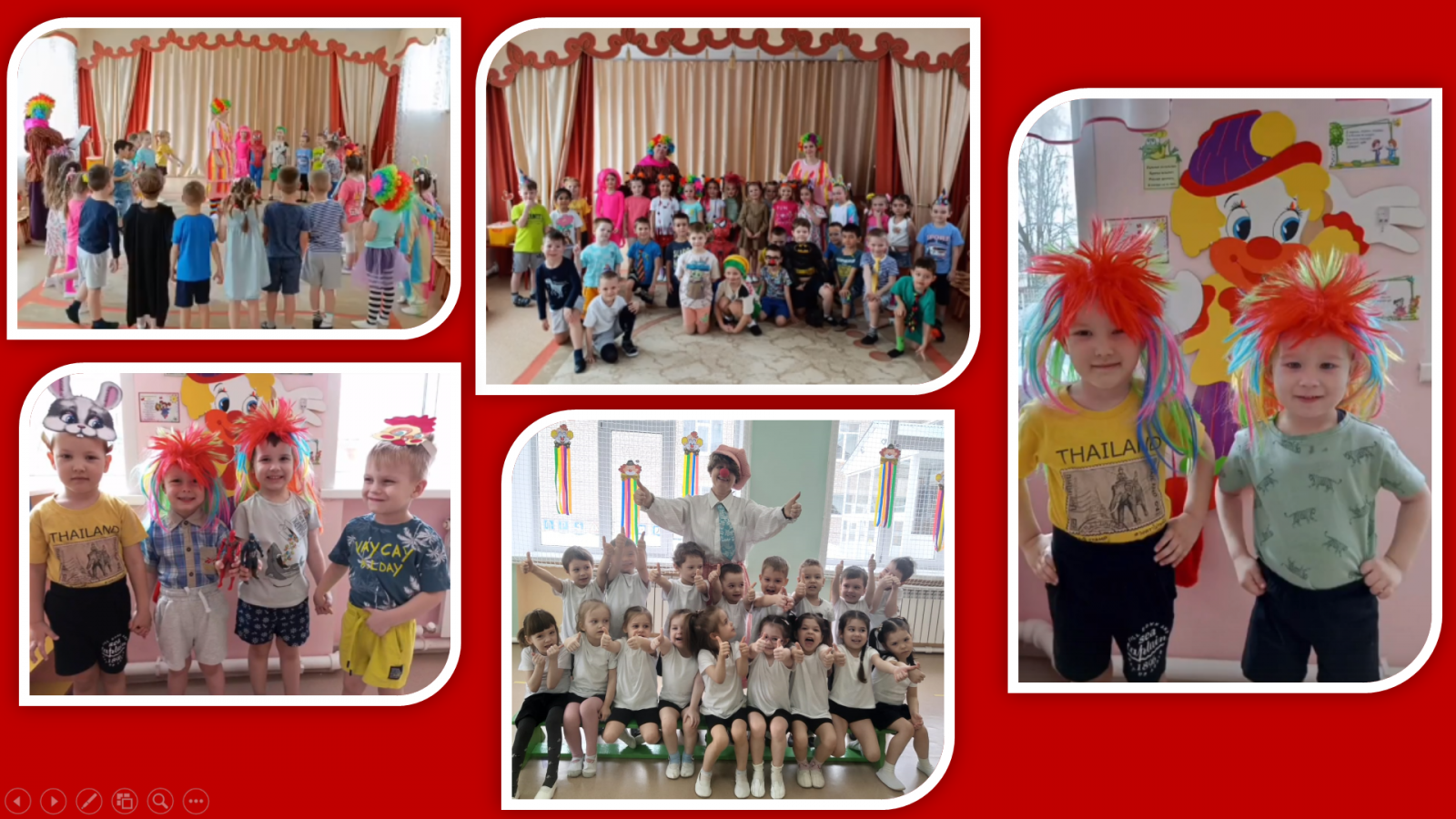 1 апреля - это самый веселый день в году. Считается, что шутка и смех дают душевное и физическое здоровье. В этот день в нашем детском саду мы решили повеселиться вместе с ребятами. С самого утра все дети пришли в детский сад яркие, нарядные, шуточно одетые, с хорошим настроением. Вместе с клоунами дети пели шуточные песни, отгадывали веселые загадки, а от танцев они были просто в восторге! Все остались довольными и зарядились прекрасным настроением на весь день!