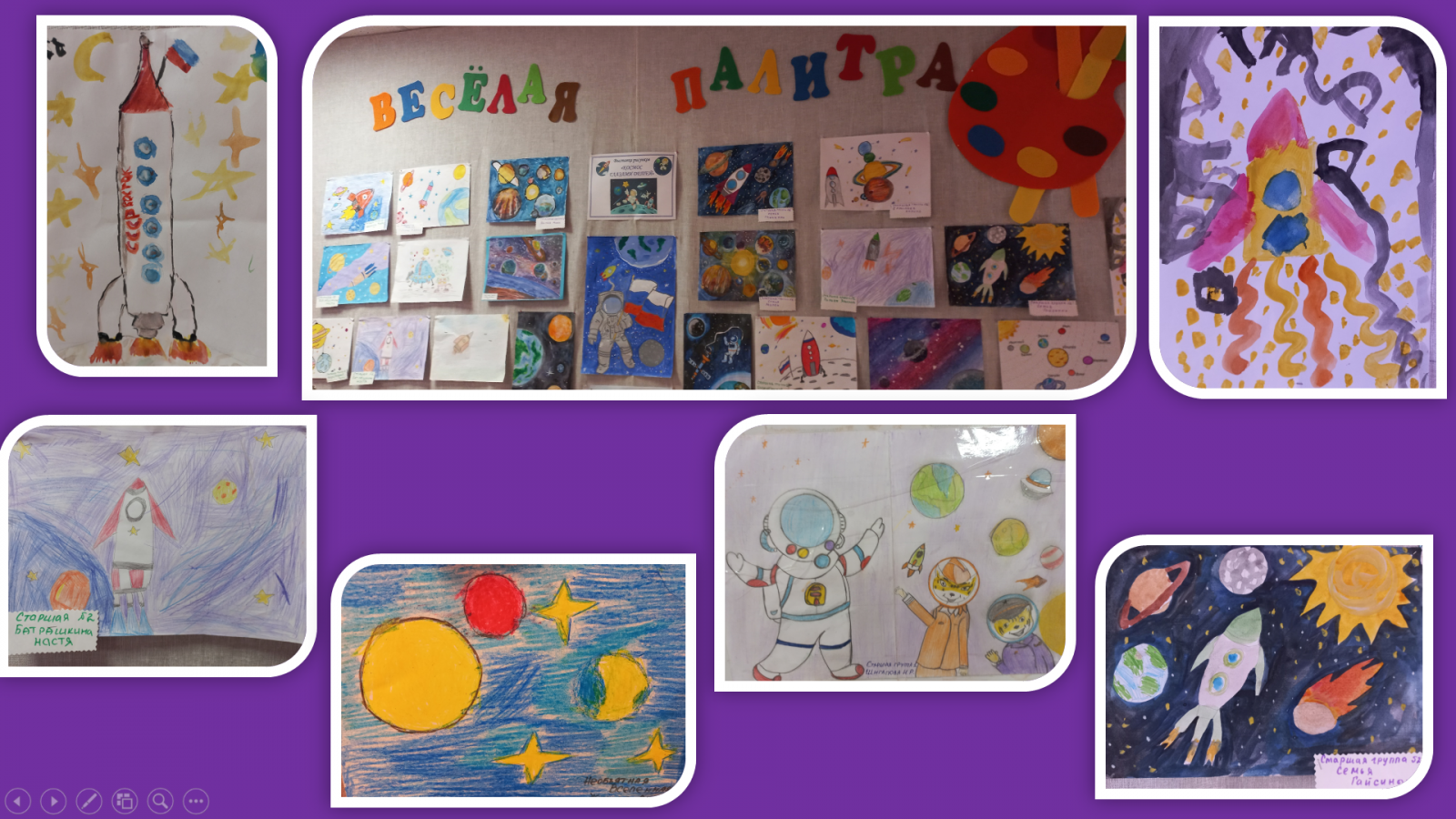 12 апреля вся наша страна отмечает замечательный праздник День Космонавтики. Ко Дню Космонавтики в нашем детском саду организована выставка детских рисунков «Космос глазами детей». Цель выставки: расширение представлений детей о космосе, развитие творчества и фантазии. Тема космоса привлекает и интересует детей дошкольного возраста, как что-то волшебное, таинственное, поэтому с большим интересом и желанием ребята и их родители приняли участие в подготовке рисунков на космическую тему. Дети отражали в работах свои фантазии на темы космических путешествий, представляя себя космонавтами, выходящими в открытый космос, встречу с инопланетянами. На их работах можно увидеть разнообразные космические объекты, ракеты, планеты, созвездия, кометы. Выполнены работы в смешанной технике рисования восковыми мелками и акварелью. Благодарим своих воспитанников и их родителей за проявленную активность, неиссякаемую фантазию и мастерство, желаем им дальнейших творческих успехов!
