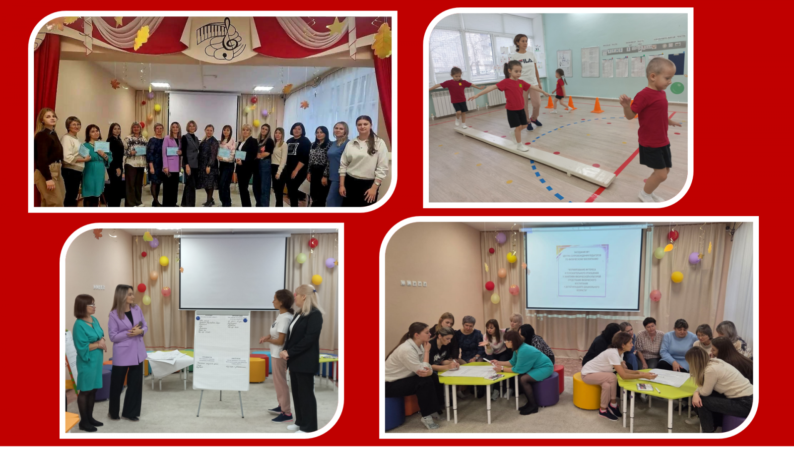 Наш детский сад является руководителем муниципального центра методического сопровождения педагогов по физическому воспитанию. 31 октября совместно с МБДОУ «Детский сад №12» мы организовали педагогическую гостиную «Формирование интереса и положительного отношения к занятиям физической культурой средствами физического воспитания у детей младшего дошкольного возраста» на базе МБДОУ «Детский сад №12». Заседание организовано с целью методического сопровождения деятельности педагогов ДОУ в свете реализации образовательной области «Физическое развитие». В рамках заседания инструктора по физической культуре и воспитатели делились опытом работы: показали образовательную и игровую деятельность, мастер – классы, выступления из опыта работы. Хочется отметить качественный уровень подготовки педагогов и поблагодарить МБДОУ «Детский сад №12» за организацию и проведение мероприятия.