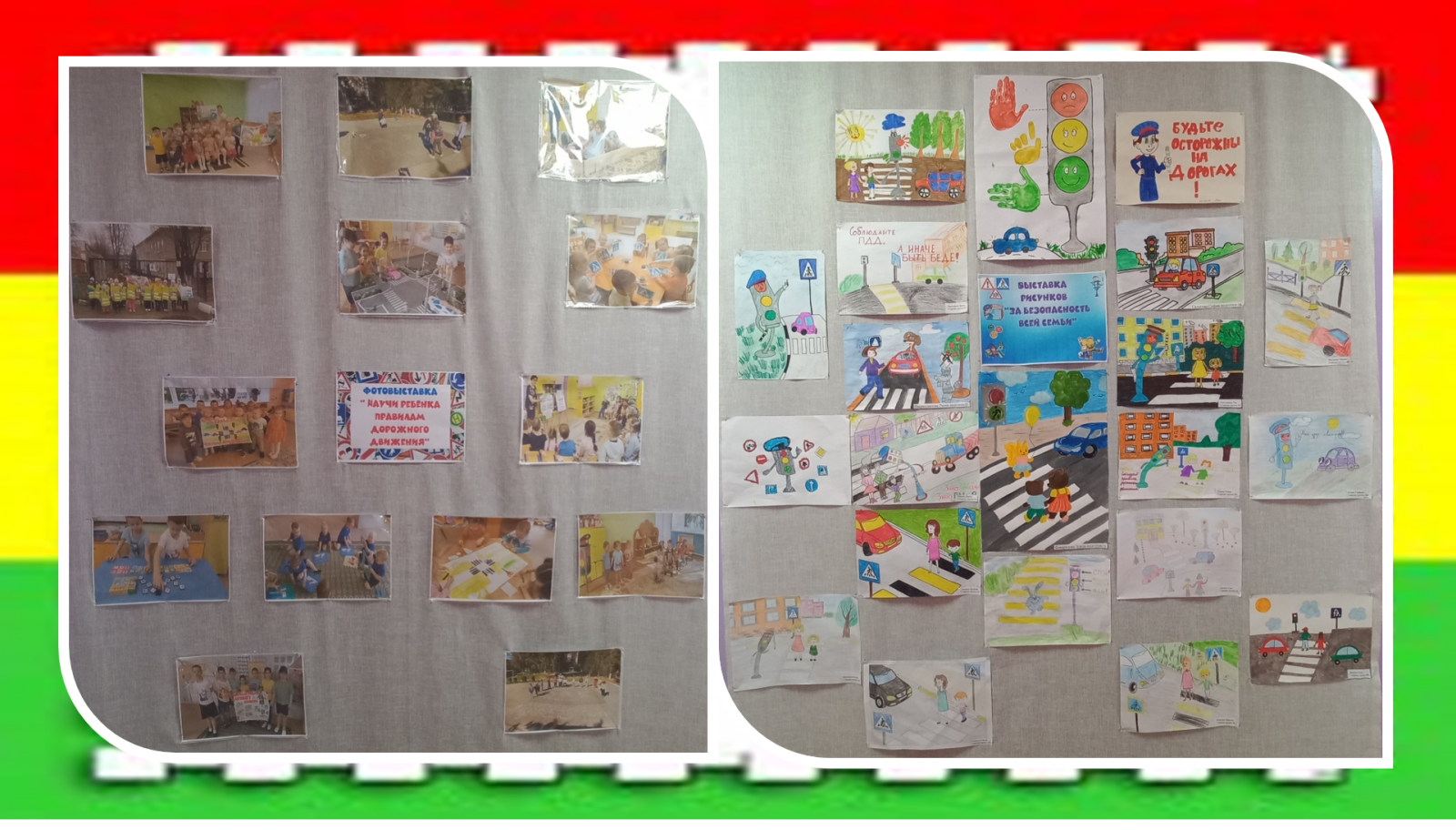 В нашем детском саду ведется систематическая работа по обучению воспитанников правилам дорожного движения. В рамках оперативно – профилактического мероприятия «Осенние каникулы» организована выставка рисунков «За безопасность всей семьей!» и фотовыставка «Научи ребенка правилам дорожного движения». Дети в своих рисунках совместно с родителями отразили самые распространенные ситуации, связанные с правилами дорожного движения. Рисунки получились правдивые, простые. А фотовыставка собрала яркие фотографии детей, демонстрирующие важность соблюдения ПДД детьми совместно с педагогами. Среди представленных снимков были кадры, показывающие юных участников дорожного движения, ожидающих зелёный сигнал светофора на переходе, знакомящихся с дорожными знаками и правильно пересекающих проезжую часть. Фотовыставка и выставка рисунков оставит глубокий отпечаток в памяти детей и послужит важным уроком для всей нашей детской и взрослой аудитории. Соблюдение простых правил помогает защитить жизнь и здоровье наших малышей!