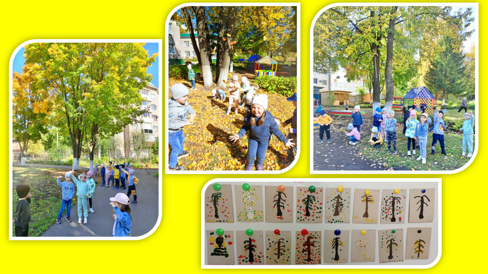 Золотая осень - прекрасное время для прогулок с детьми. В начале осени еще тепло, редко идут дожди, а яркая листва на деревьях радует нас. Воспитатель Саляева Т.Н. со своими воспитанниками старшей группы №1 пользуются осенними теплыми лучами солнца и гуляют с пользой: рассматривают осенние деревья, наблюдают за изменениями в природе, за птицами. Ребята с удовольствием собирают листья и делают из них красивые осенние букеты. Осень в самом разгаре, и в природе происходят удивительные изменения. Каждый осенний месяц несёт изменения в окружающий мир и хорош по-своему.